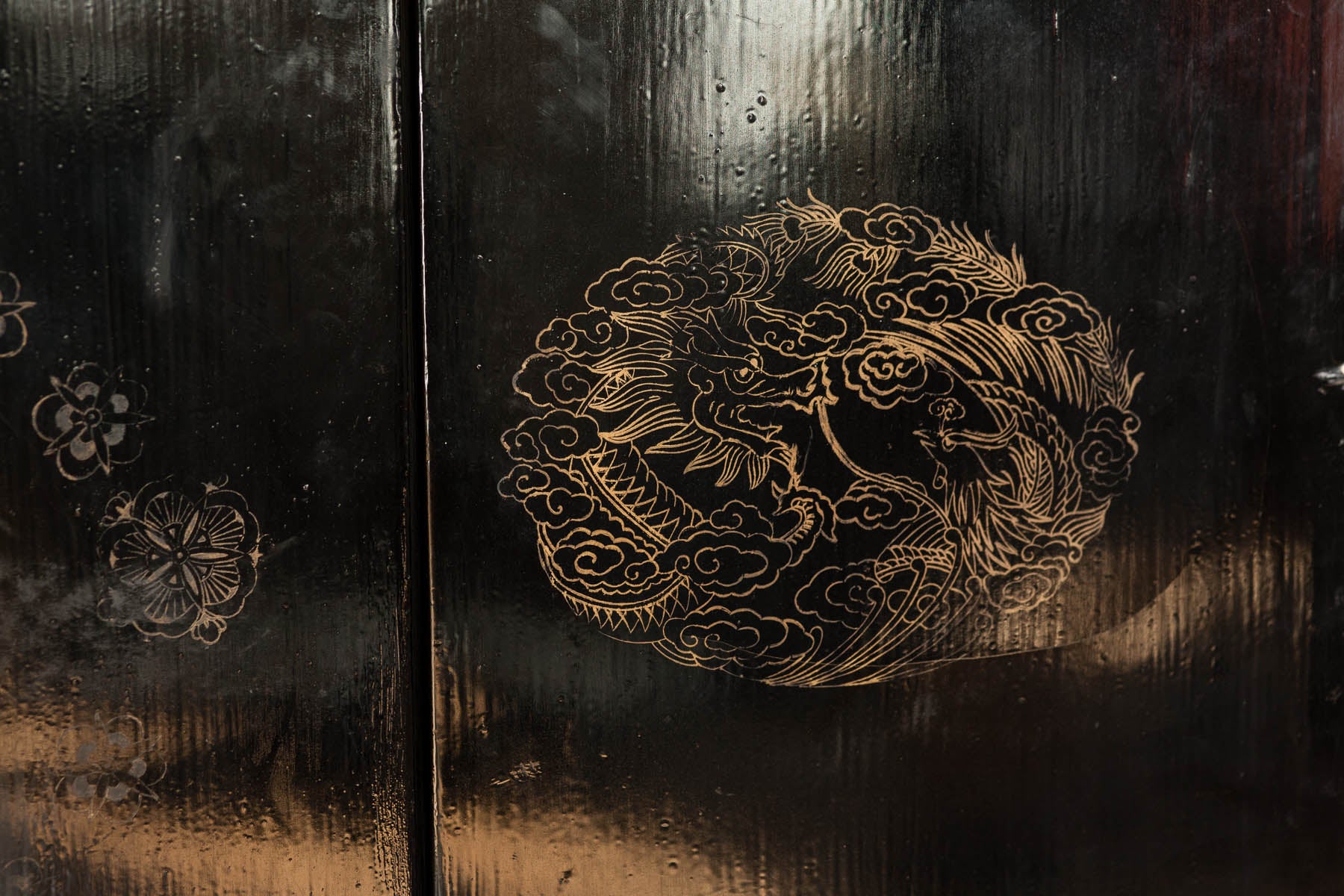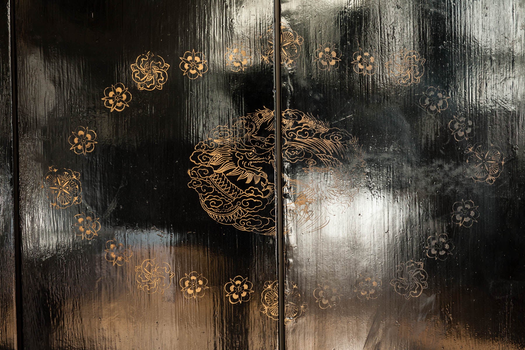 One of the most exquisite items in our showroom, the substantial and heavy screen was handcrafted by the most skilled craftsman in Japan with deep black lacquer only available in the country. This type of screen has been used by many top interior designers as a statement piece wall-mounted, or as an exquisite divider in the most elegant homes.