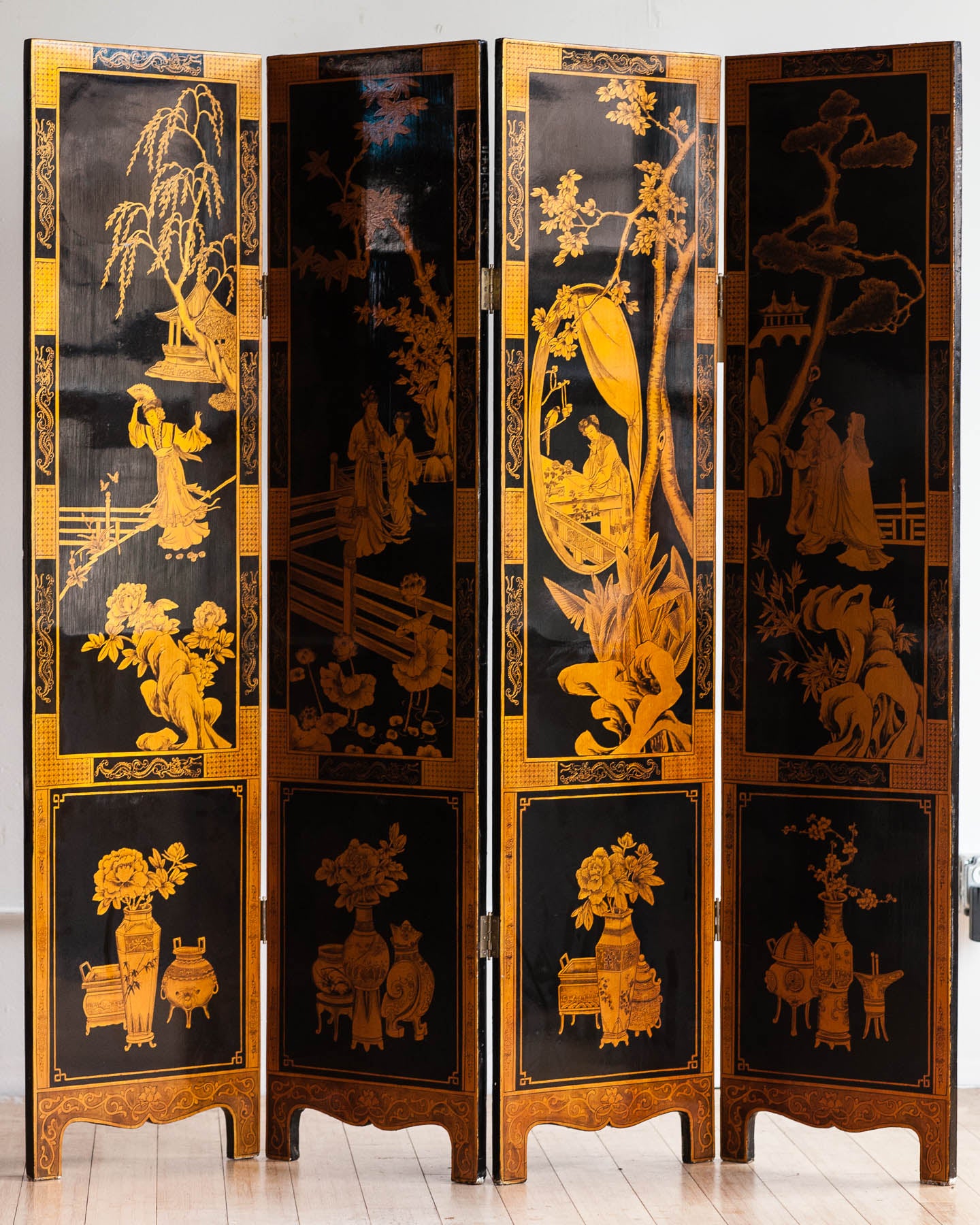 Japanese Four-Panel High-Gloss Lacquered Garden Scene Screen/Room Divider