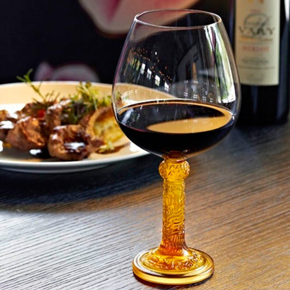 The stem of each glass is adorned with an intricate fusion of ancient dragon motifs and delicate chrysanthemum patterns. In Eastern culture, the dragon symbolizes protection, vitality, and good fortune, while the chrysanthemum represents noble virtues such as kindness, honor, and integrity. Together, these elements create a harmonious blend of strength and grace, adding a sense of balance and reverence to any setting.