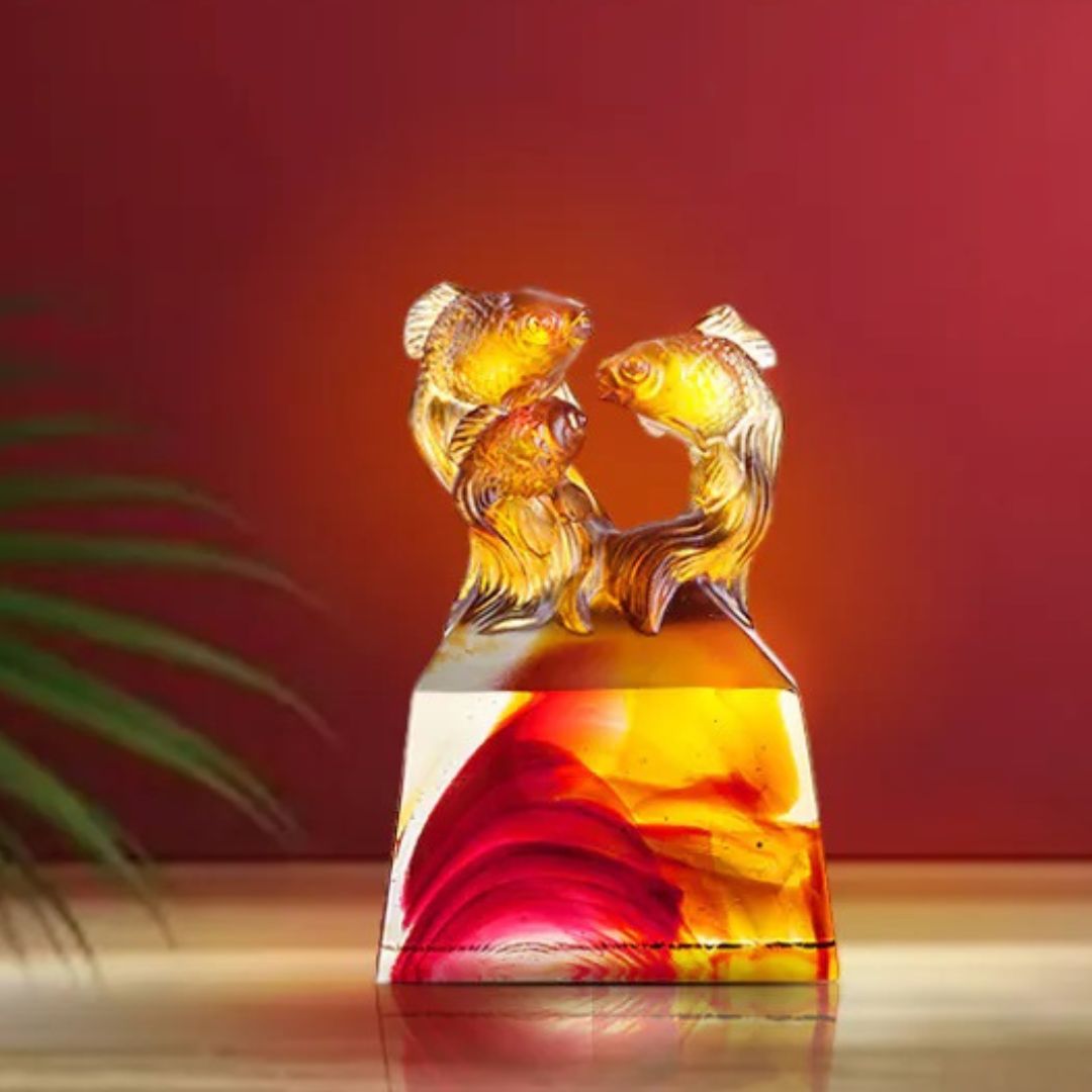 Lively Liuli Fish Sculpture: Showcasing three elegantly rising fish, symbolizing harmony, teamwork, and collective momentum.