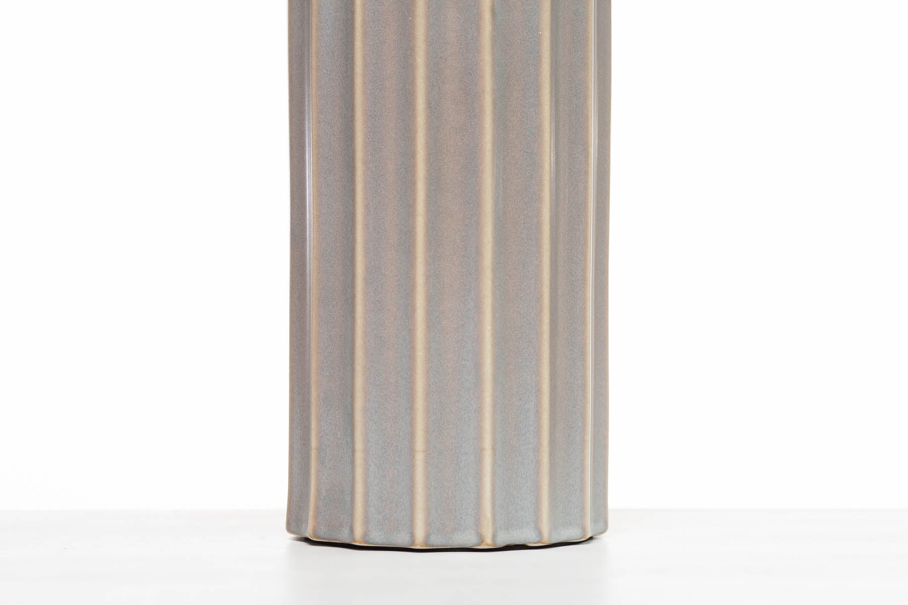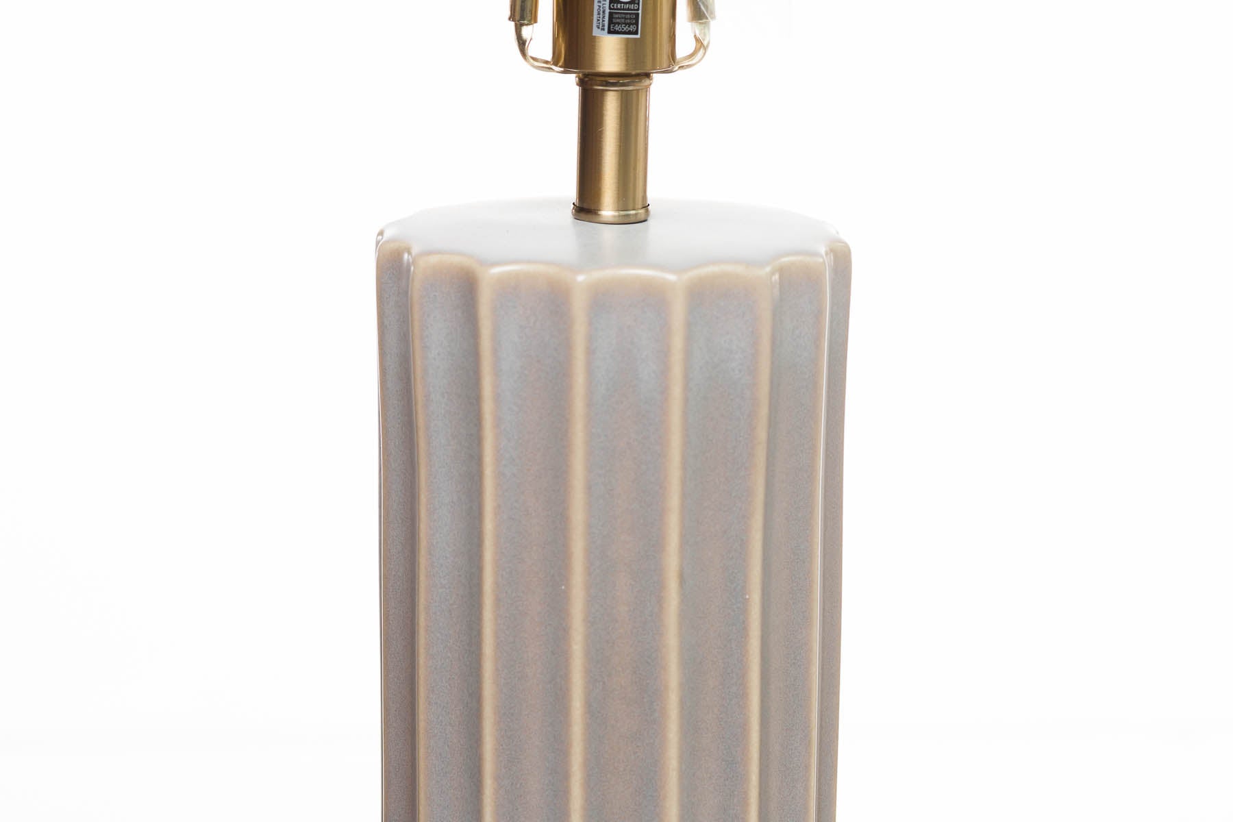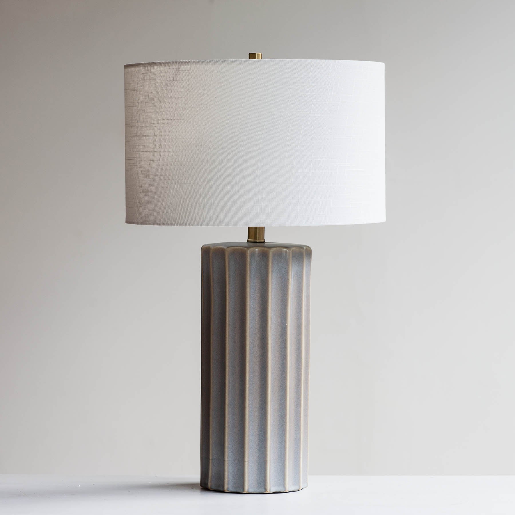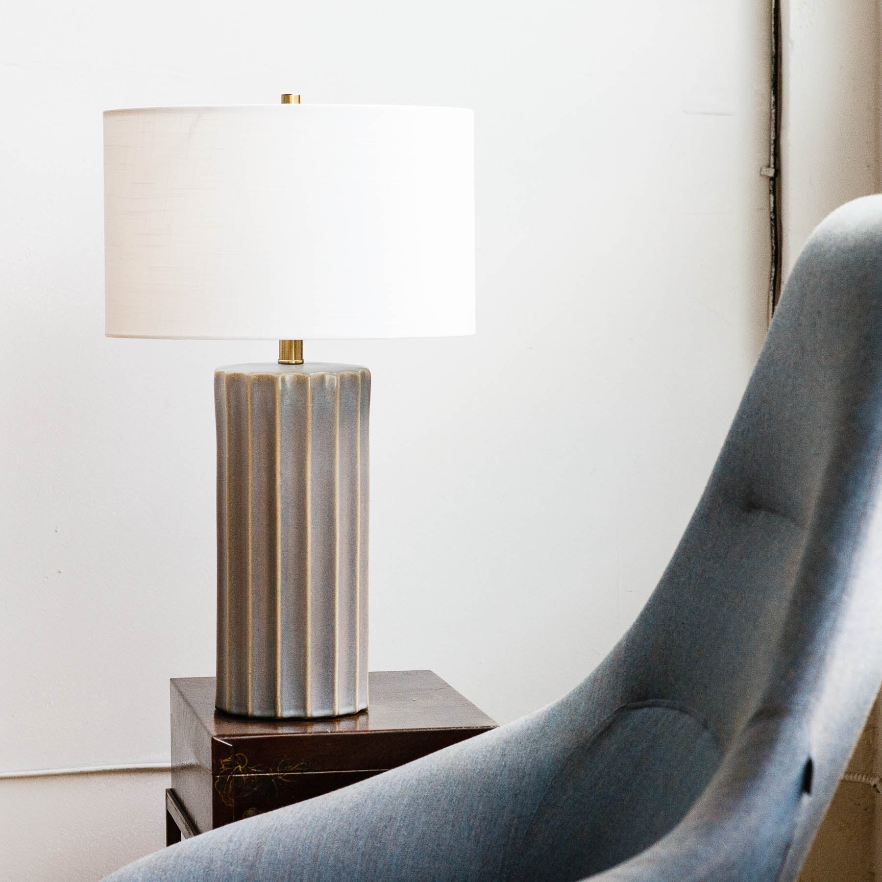 Fully handmade by our artisans, the refined Naomi lamp with gentle vertical ridges provides warm light for writing desks and end tables. Smooth finishes in porcelain convey sophistication for this versatile piece. From the inline switch to the custom linen fabric we chose for the lamp shade, nothing was left to chance. You will see attention to detail in every part.