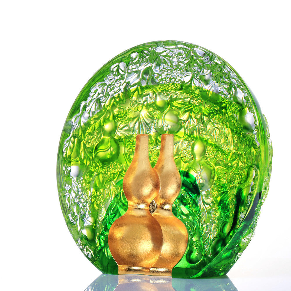 Crystal Gourd Feng Shui Hulu Sculpture, "A Resplendent Union", 24K Gilded