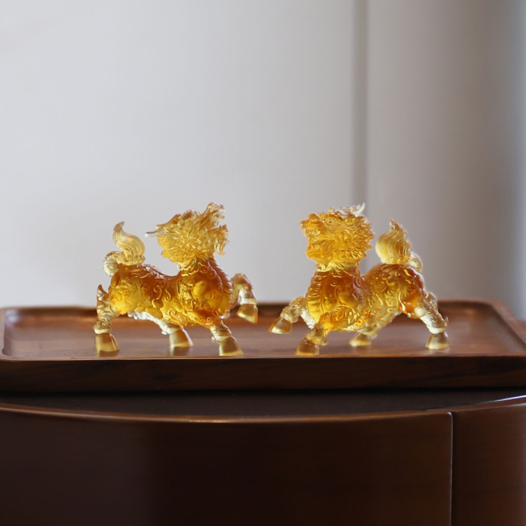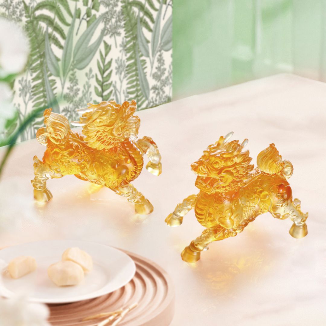 Design Description: According to ancient beliefs, the appearance of the qilin brings forth auspicious energy and signifies the presence of great talents. In this mesmerizing design, a pair of qilin stand tall, their heads held high as they gaze into the distance. With their mouths open, they breathe in and out the essence of good fortune, while exuding a sense of warmth and kindness. Gracefully adorned with flowing manes and tails that catch the wind, these magnificent creatures infuse the space with a dynamic energy and vibrant spirit. Intricately intertwined within the design is the hulu gourd motif, symbolizing happiness and wealth in Mandarin. The hulu vine, reaching upward, represents growth and prosperity, serving as a testament to the thriving nature of life. By carrying the hulu on their backs, the qilin embody the enduring legacy of joy and abundance passed down through generations. This captivating composition evokes an unwavering spirit and invokes the blessings reminiscent of a golden age. Traditionally depicted in pairs, the male qilin raises its left hoof, while the female raises its right. Placing this enchanting duo in your entryway or living room invites their auspicious energy into your surroundings. It also makes a thoughtful gift for occasions such as newborns, weddings, and housewarmings, symbolizing well-wishes and a prosperous future. May the presence of the qilin in your life bring forth abundant blessings and open doors to a realm of prosperity and joy. |