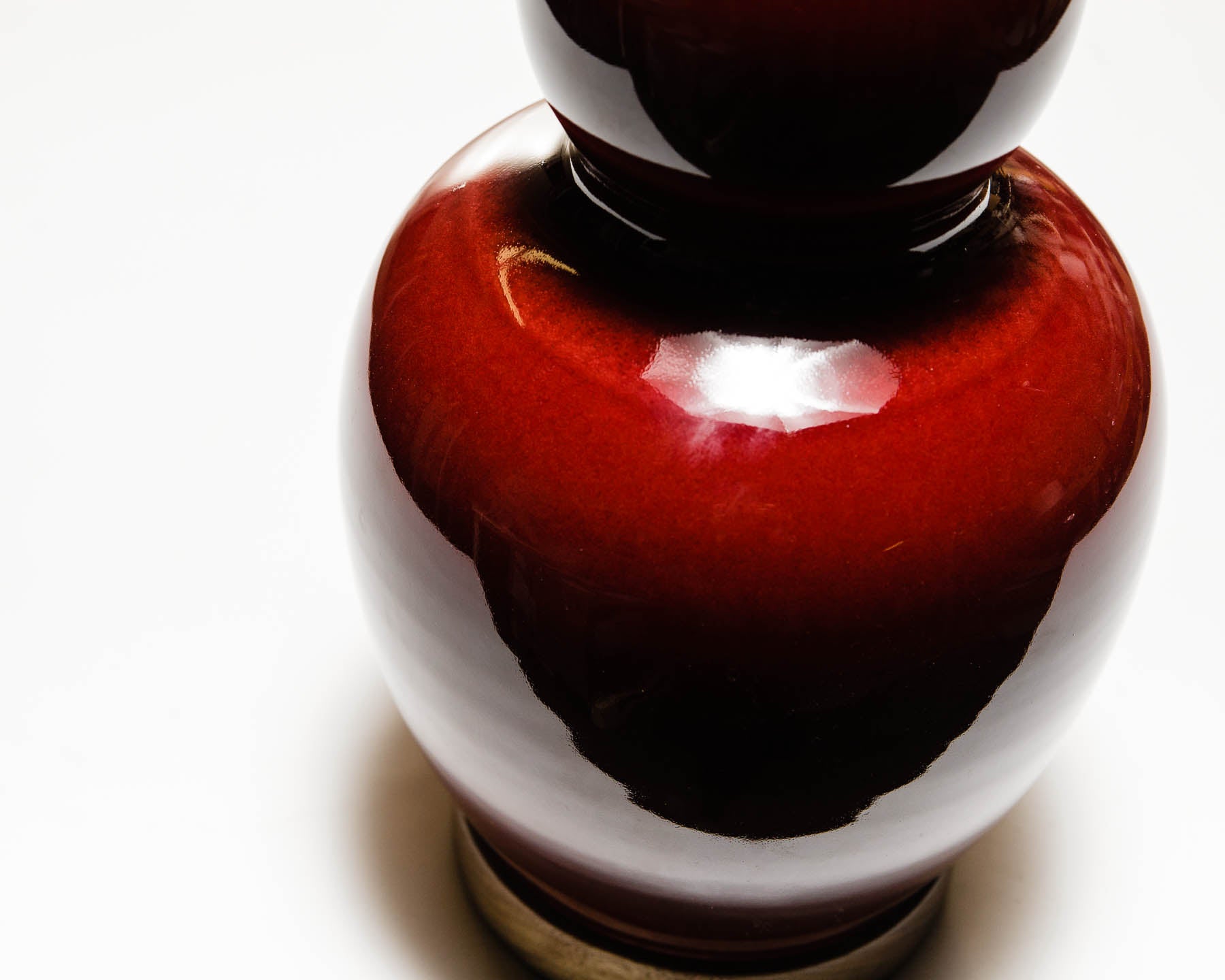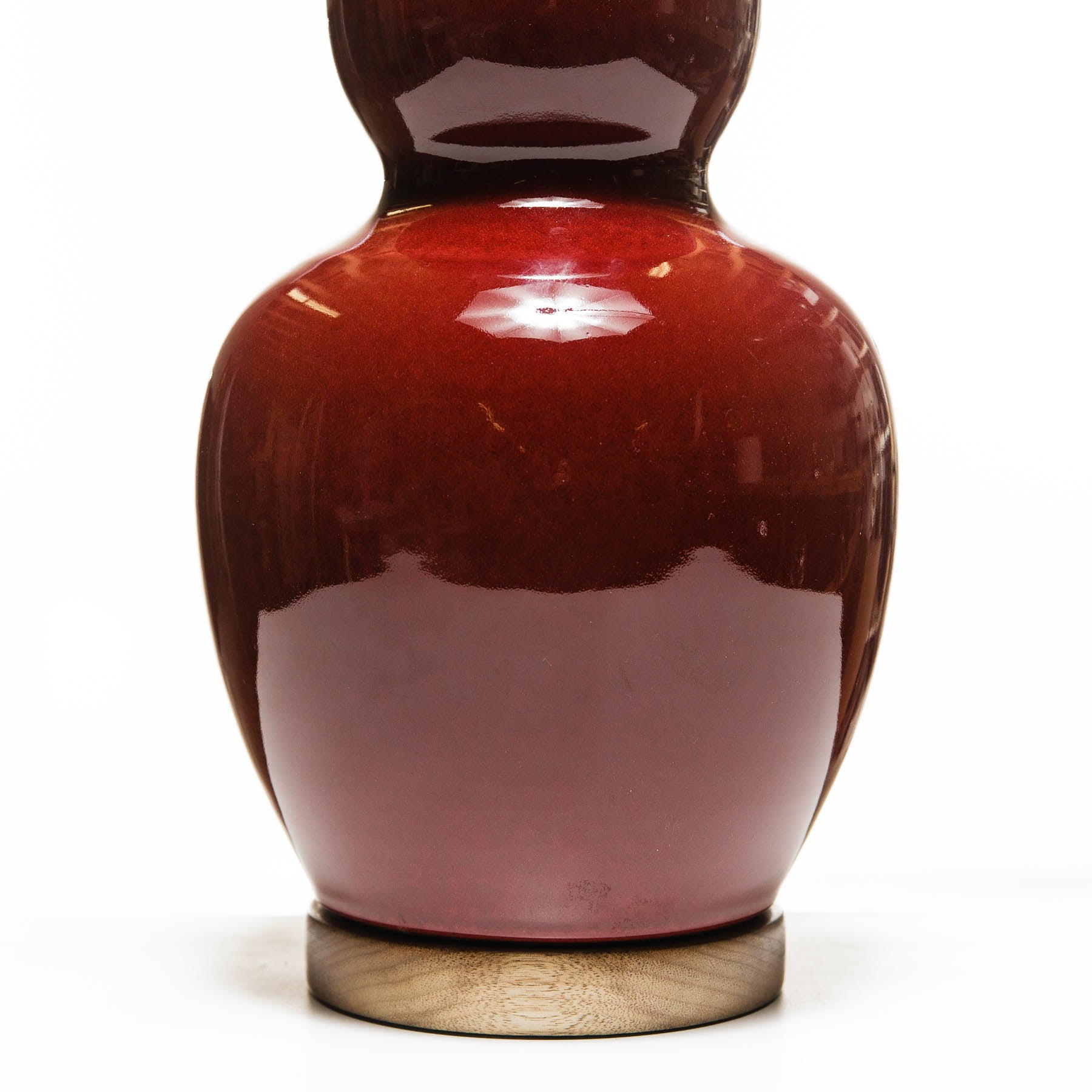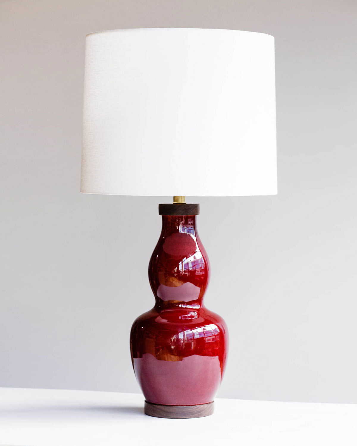 The Scarlett porcelain Table Lamp in Pinot Red, the traditional oxblood red, is the epitome of a double gourd lamp. The substantial porcelain vessel with the perfect proportions was hand-spun in Taiwan by the Presidential Award winner in pottery Master Chao-Tsing Hsu exclusively for Lawrence & Scott. The cap and stand are hand-turned from sustainably harvested walnut to fit every unique vessel, making each a one-of-a-kind masterpiece that will bring years of warm glow to any space.