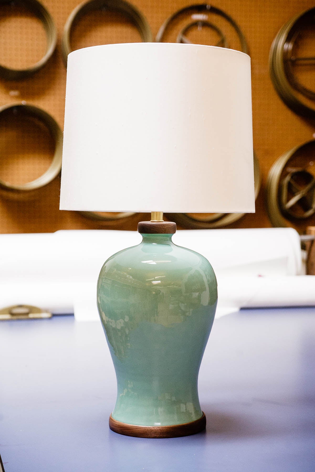 Marrying the essence of tradition with contemporary design, we have reimagined the timeless Chinese Plum Blossom (Meiping) shape by infusing it with a resolute, minimalist foundation, resulting in a sleek yet grounded silhouette. To bring this vision to life, the porcelain vessel of the Table Lamp was meticulously handspun in Taiwan by the esteemed Presidential Award recipient, Chao-Tsung Hsu, exclusively for Lawrence & Scott. This masterpiece is crowned with a hand-turned cap and stand made from FSC-certified walnut, adding the final touch of craftsmanship and sustainability.