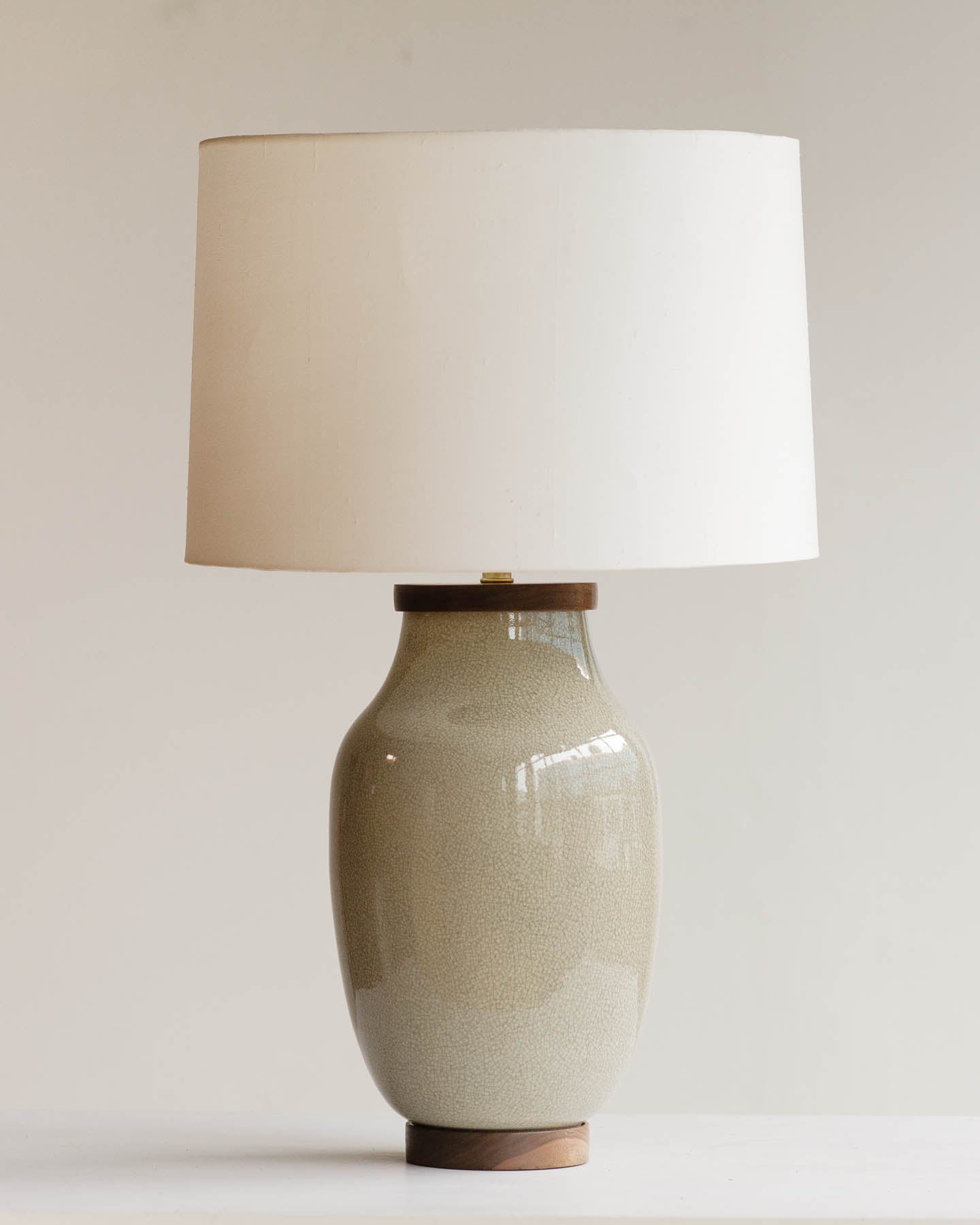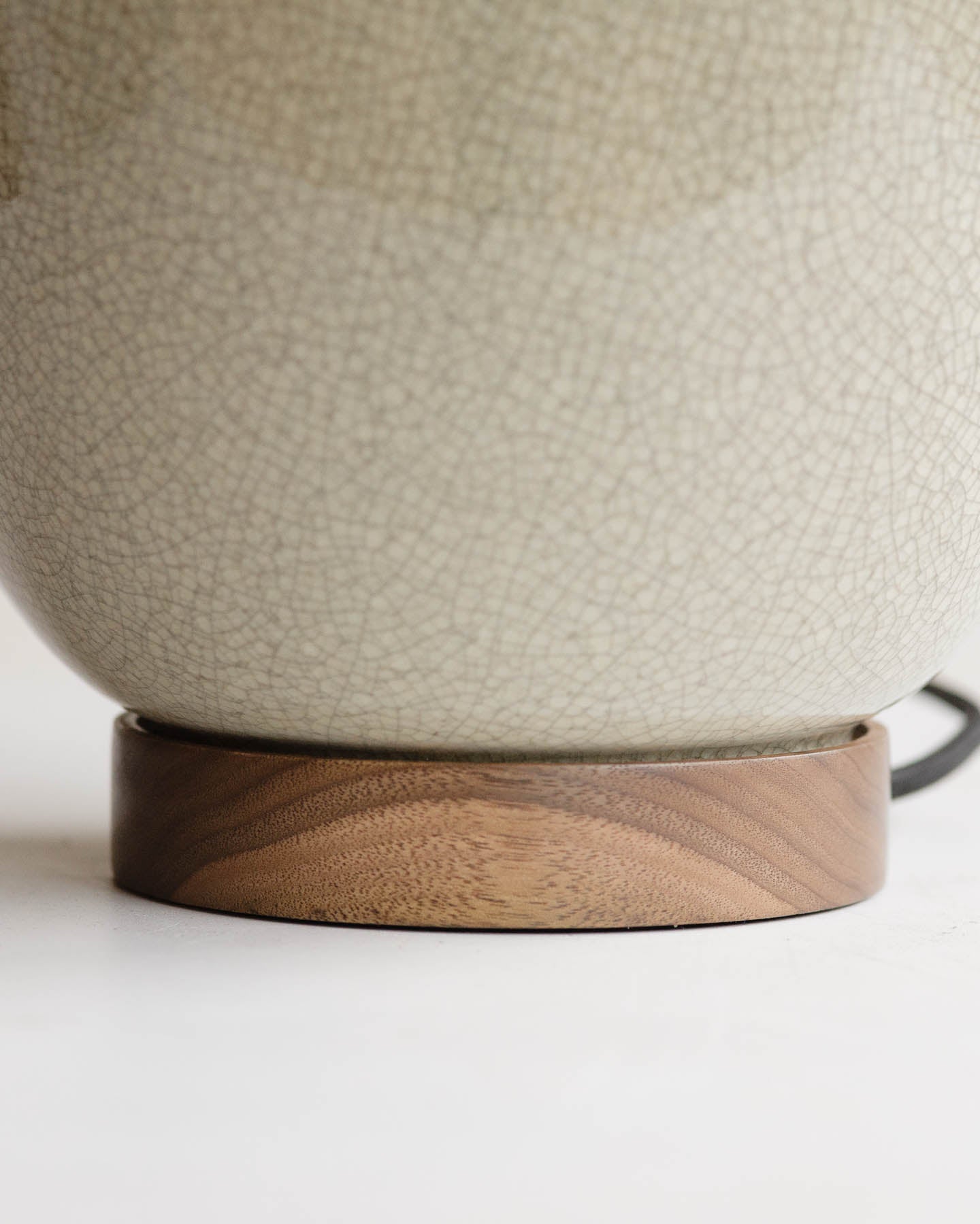 Lagom Porcelain Table Lamp Base in Oyster Gray Crackle with Walnut Base
