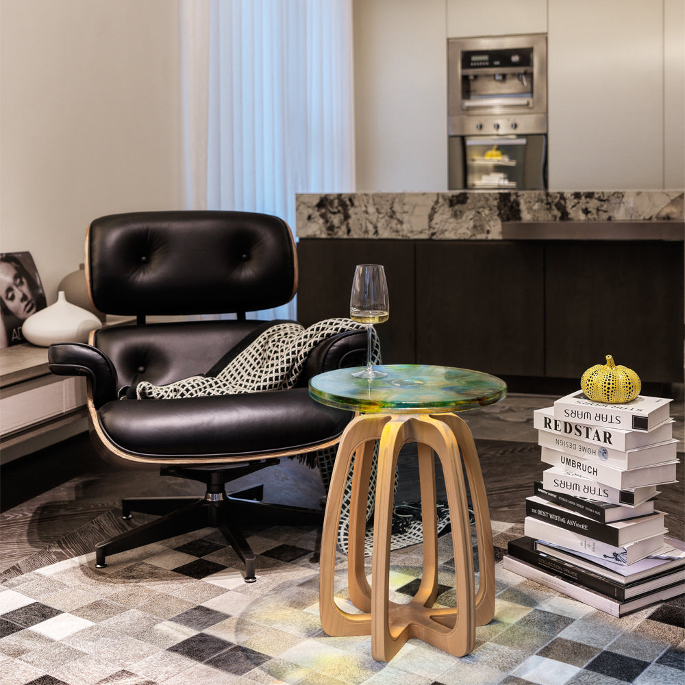 LIULI's first upcycled coffee table collection, crafted with creativity and a commitment to sustainability. We repurpose glass from past artworks, blending Eastern artistry with our respect for nature. This ESG initiative, launched in 2022, reflects our core value of "creating art that is good for the heart." Founder Loretta H. Yang reimagines the traditional "pâte de verre" technique, experimenting with innovative colors and upcycling materials. Collaborating with the renowned Yong Jin Wood Crafts, we merge glass and wood to create a perfect balance of art and functionality.
